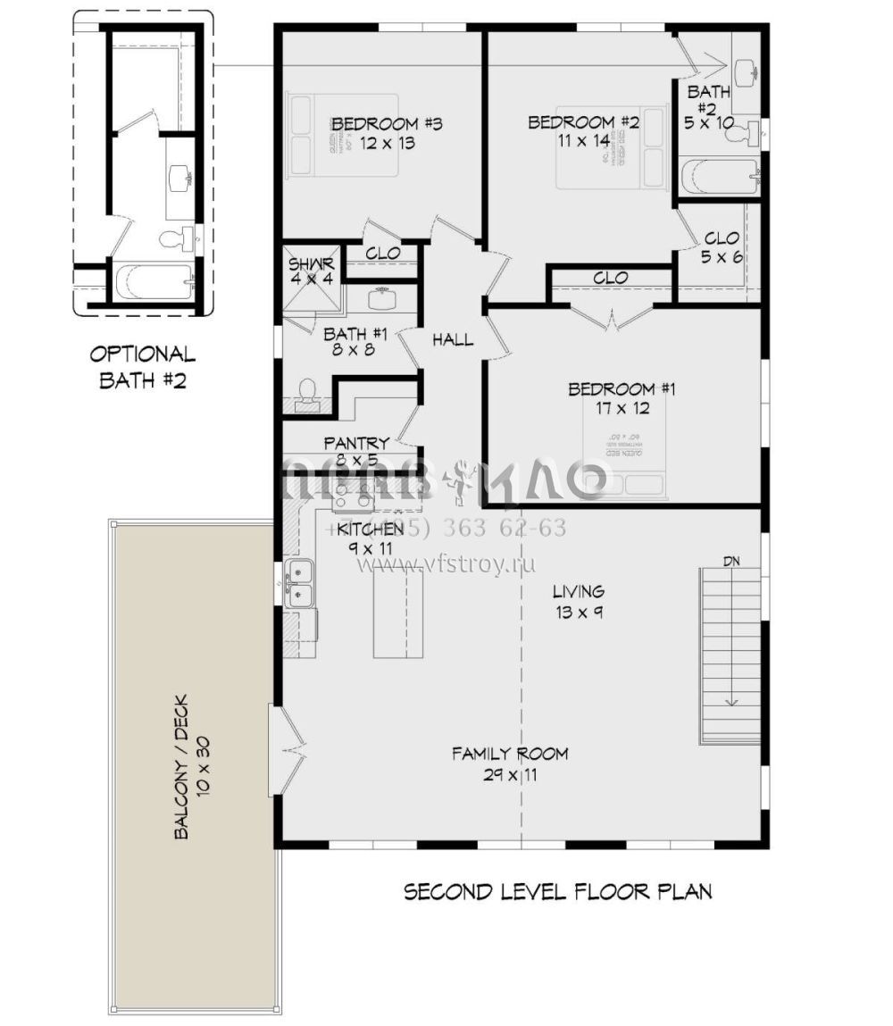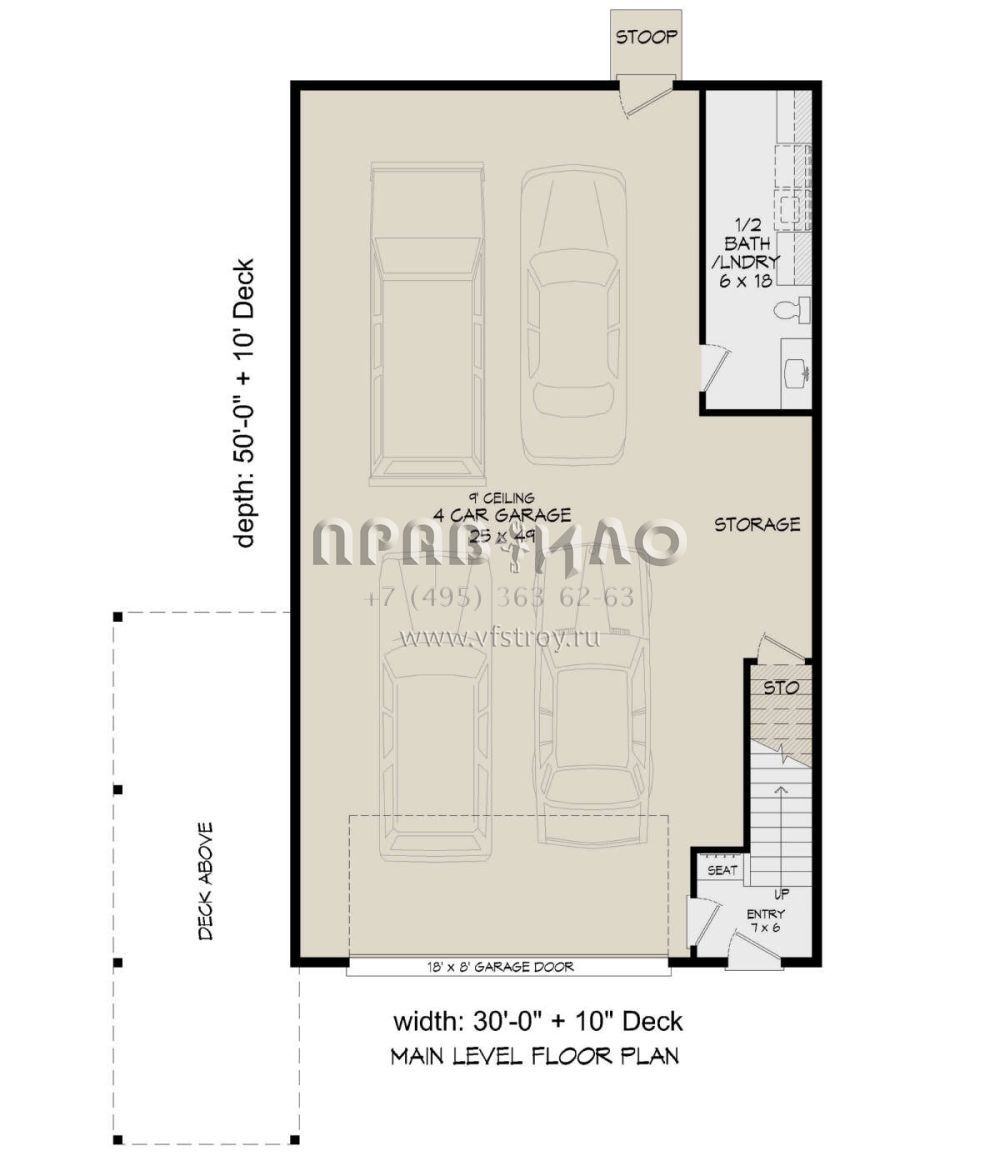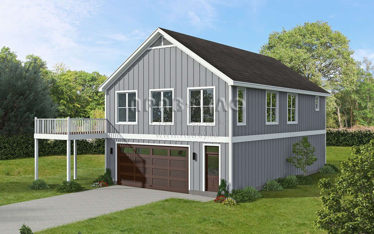 Проект двухэтажного дома с гаражом на три и более машин в стиле Ранчо S5-161 (940-00854)