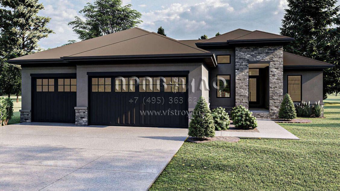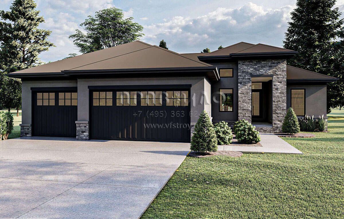 Проект одноэтажного дома с гаражом на три и более машин в современном стиле S5-161 (963-00301)