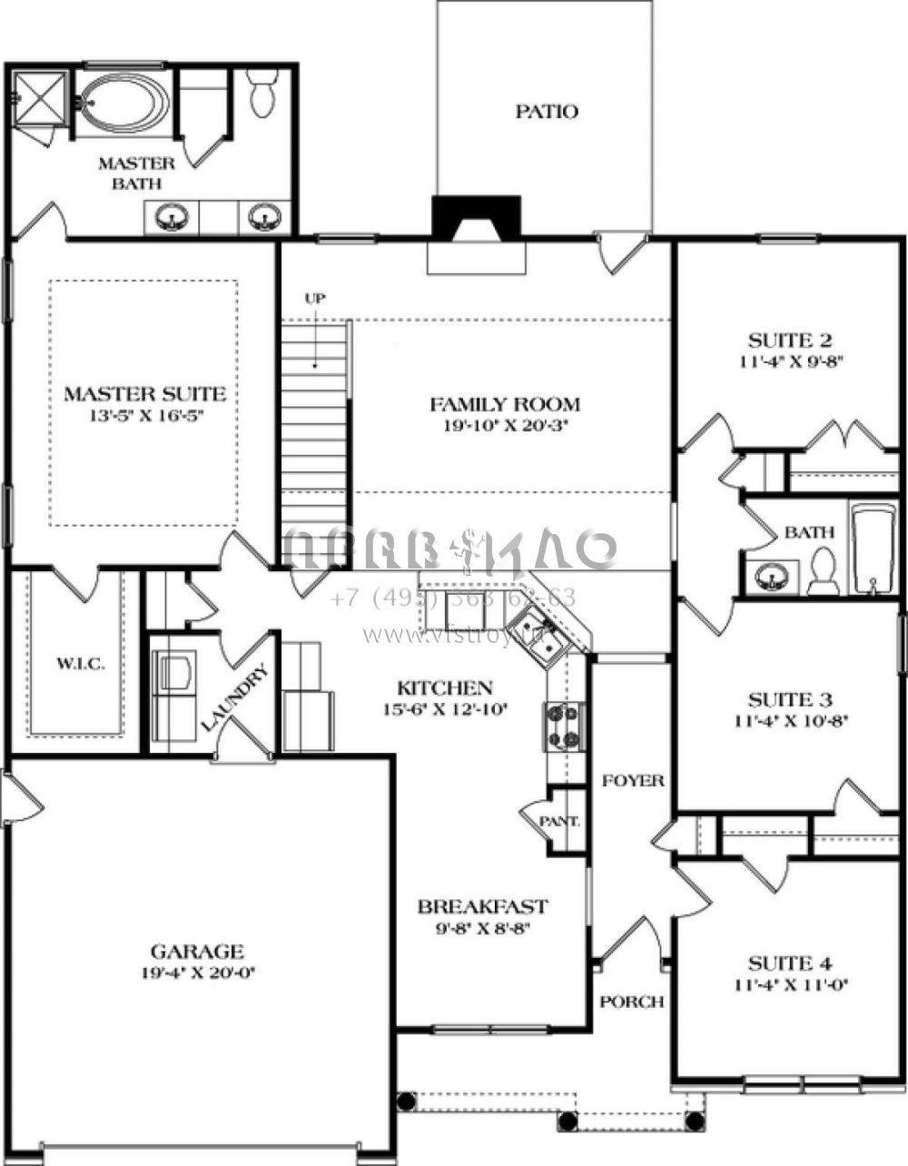 Проект одноэтажного дома с гаражом на две машины в стиле Ранчо S5-162 (3323-00592)