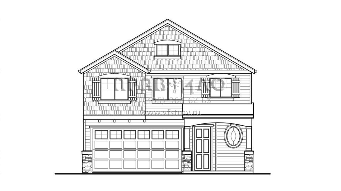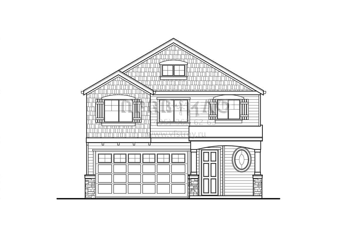 Проект двухэтажного дома с гаражом на две машины в стиле Ранчо S5-162 (9488-00013)