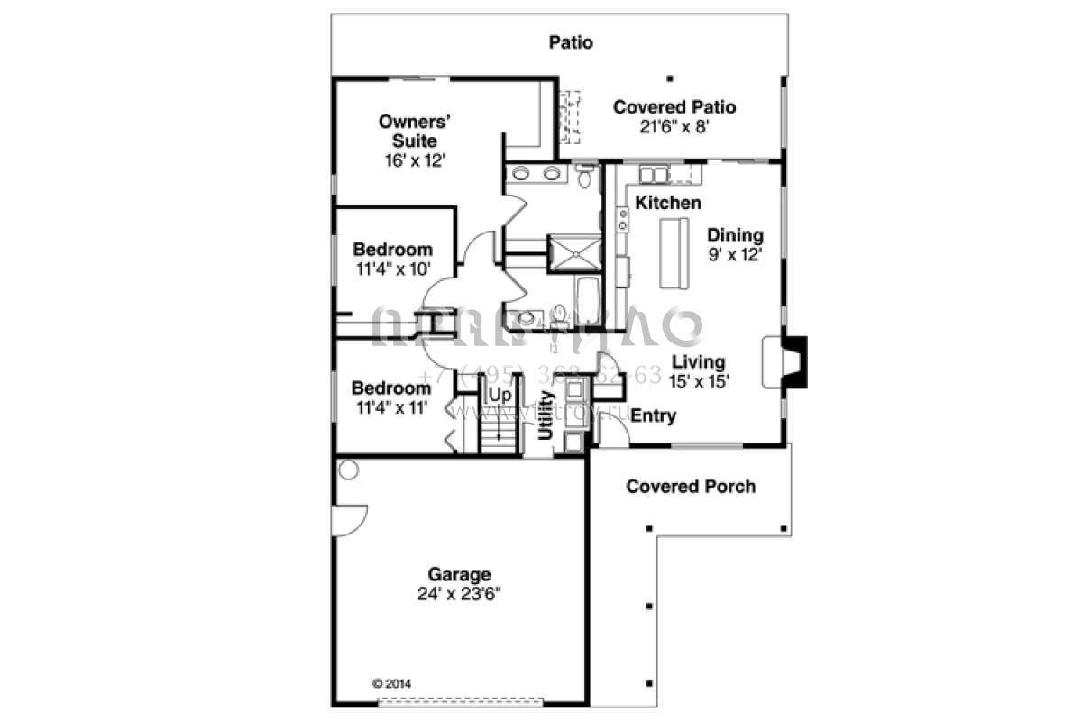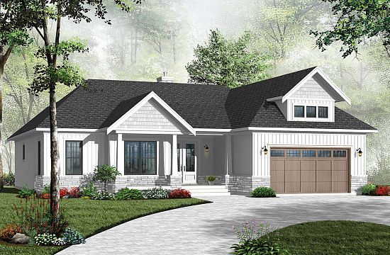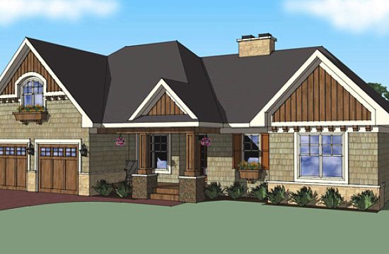 Проект одноэтажного дома с гаражом на две машины в стиле Ранчо S5-163 (035-00661)