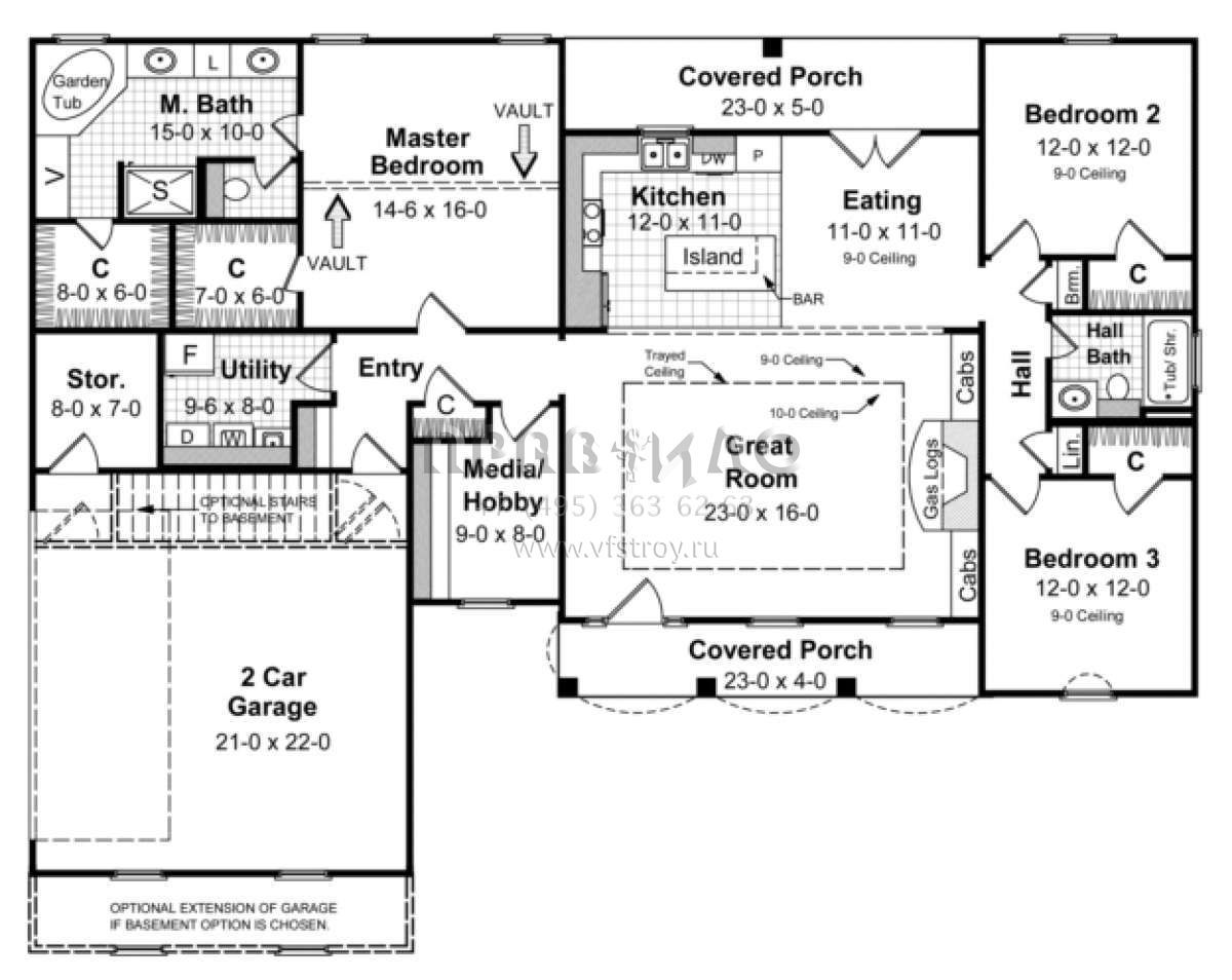 Проект одноэтажного дома с гаражом на две машины в стиле Ранчо S5-163 (348-00050)