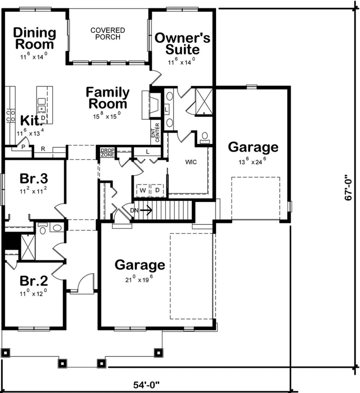 Проект одноэтажного дома с гаражом на три и более машин в американском стиле S5-163 (402-01520)