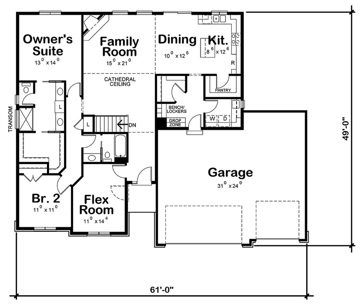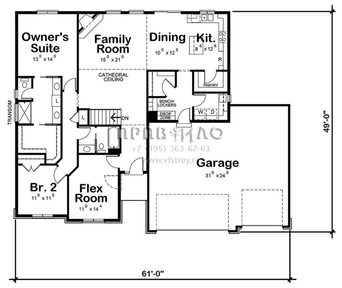Проект одноэтажного дома с гаражом на три и более машин в американском стиле S5-163 (402-01544)