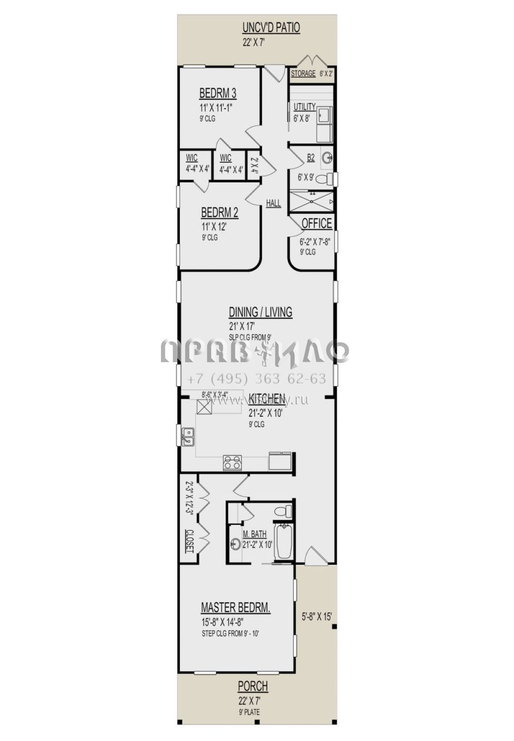 Проект одноэтажного дома без гаража в стиле Ранчо S5-163 (9300-00045)