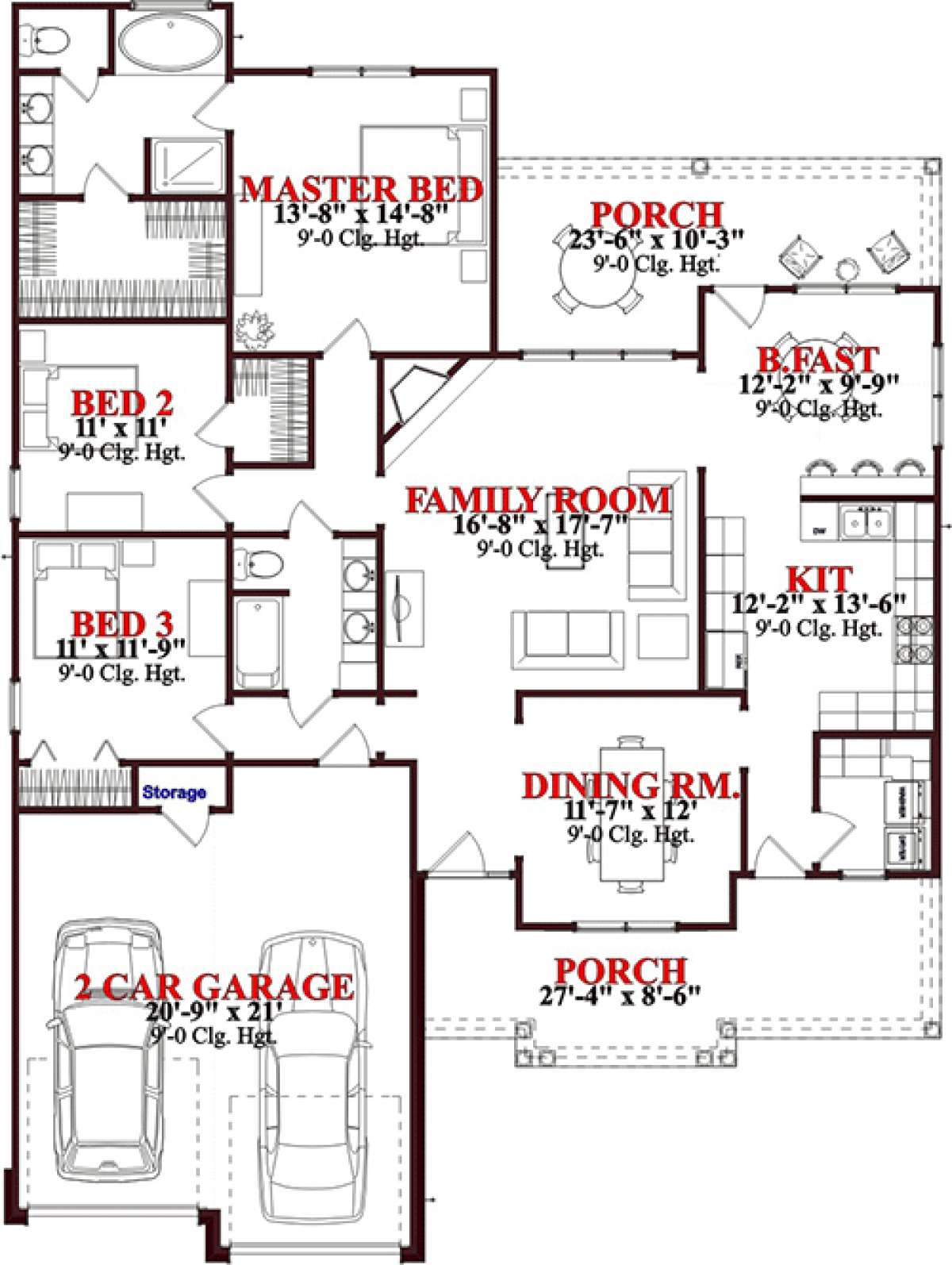 Проект одноэтажного дома с гаражом на две машины в стиле Ранчо S5-164 (1070-00180)
