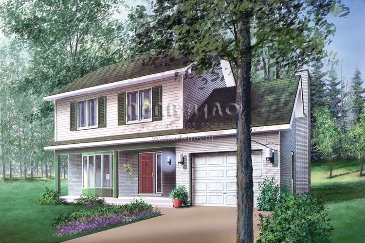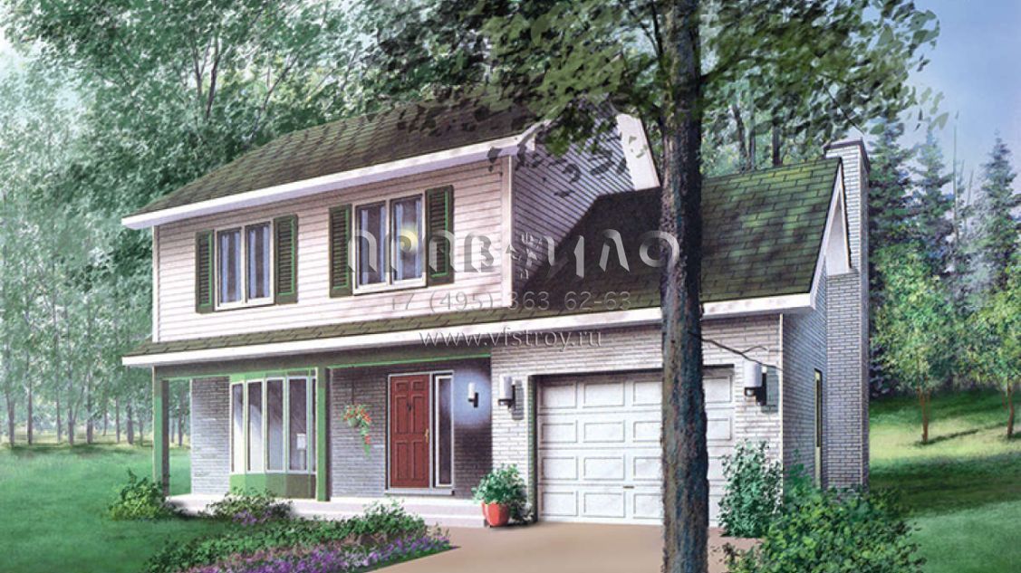 Это проект двухэтажного дома с гаражом на одну машину жилой площадью 164 кв.м. Длина дома 11 м, ширина 11 м, высота 8.8 м. В доме три спальни и один санузел.