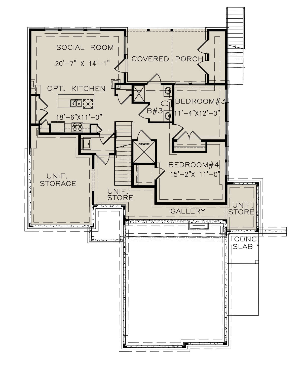 S5-164 (699-00286) Это иностранный проект, для которого требуется адаптация под нормы, действующие в Российской Федерации. Вы видите проект дома в современном стиле. В этом доме сочетаются черты сельской постройки и аскетичность лофта. Внутри жильцы смогут проводить время с максимальным комфортом. Обратим внимание, что сейчас на планировках все размеры представлены в футах. Для перевода в метры вам необходимо значение в футах умножить на 0,3048.