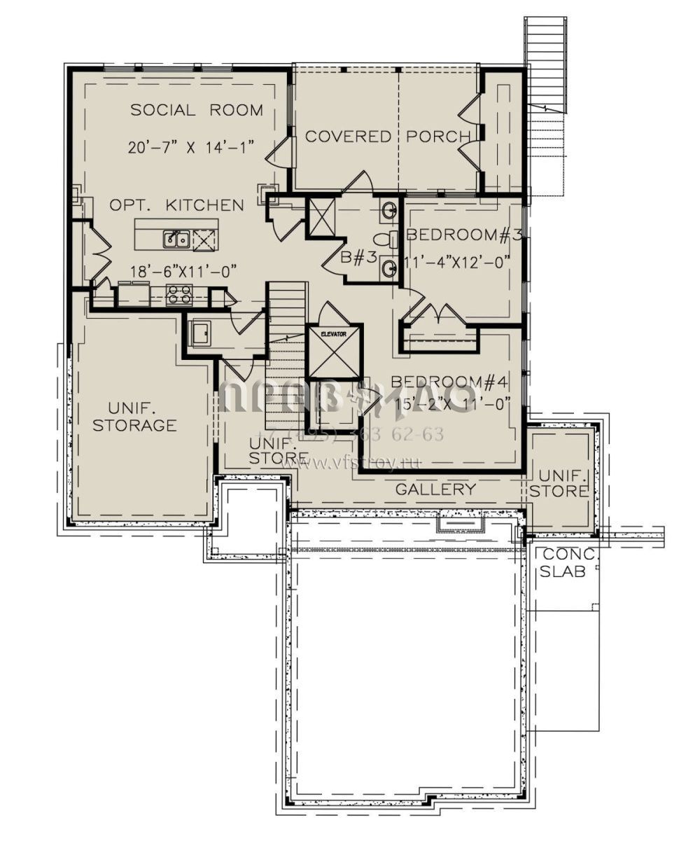 Поскольку этот проект разрабатывался иностранными архитекторами, для строительства дома требуется переработка проекта под действующие в России нормы. Данные визуализации проекта представлены для ознакомления с концепцией проекта. Проект разработан американским архитектурным бюро и представлен America's Best House Plans.