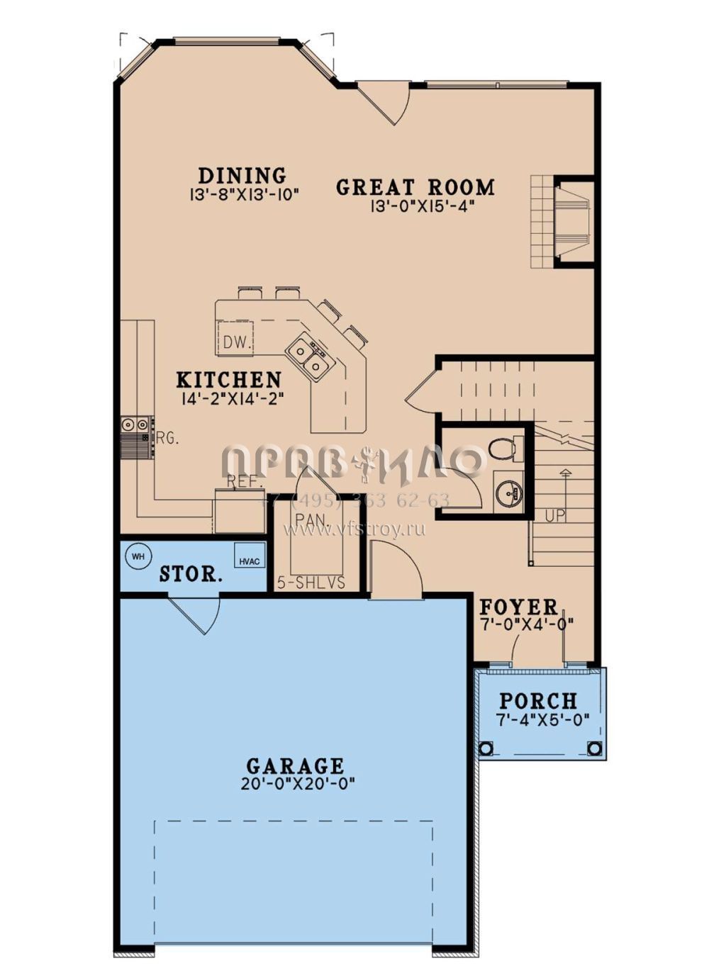Проект двухэтажного дома с гаражом на две машины в стиле Ранчо S5-164 (8318-00205)