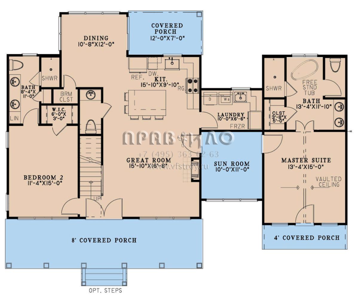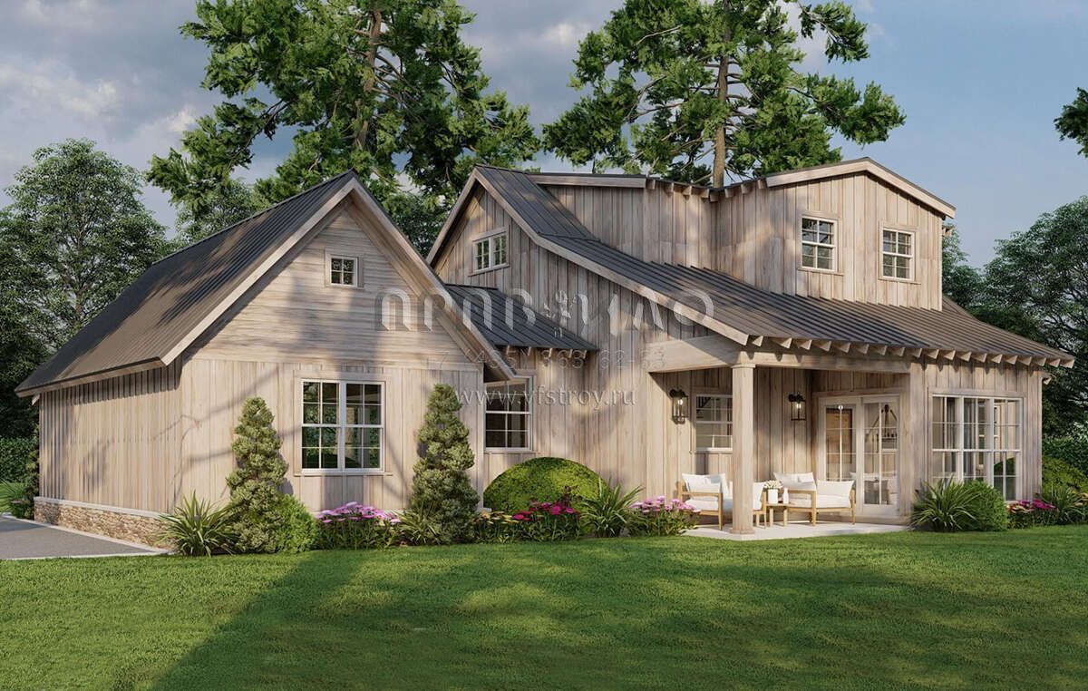 Проект двухэтажного дома без гаража в стиле Ранчо S5-164 (8318-00375)