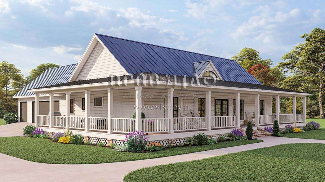 Проект одноэтажного дома с гаражом на две машины в стиле Ранчо S5-164 (9279-00001)
