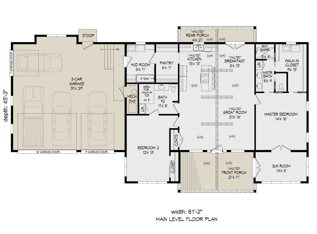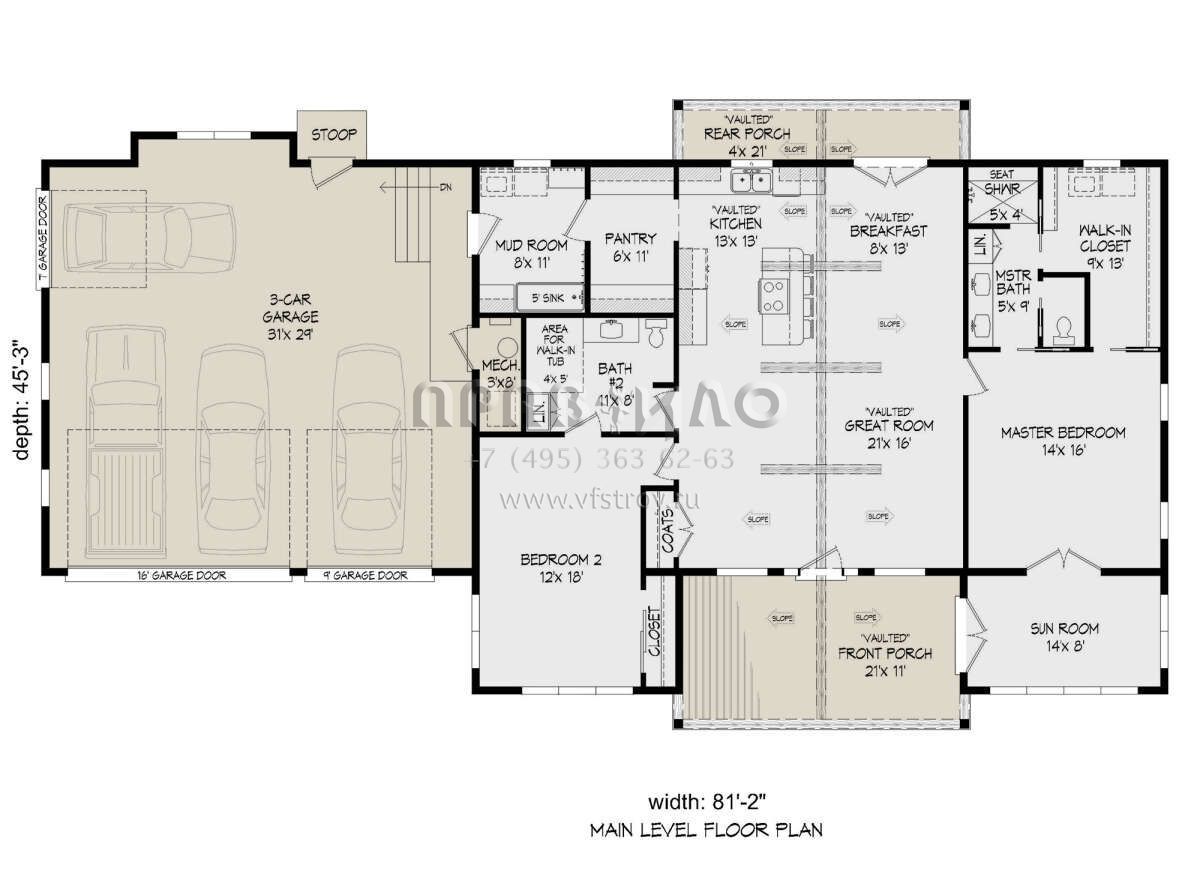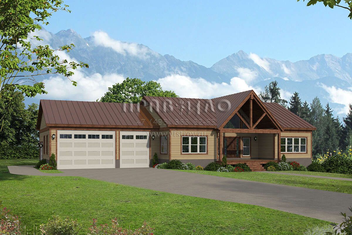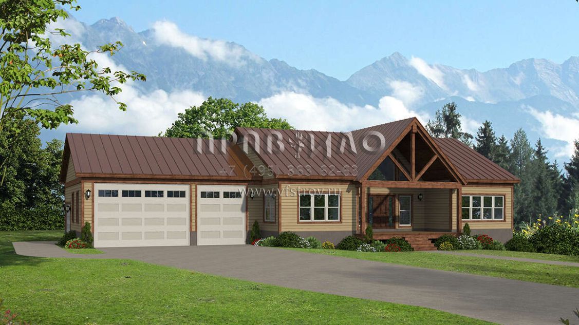 Проект одноэтажного дома с гаражом на три и более машин в стиле Ранчо S5-164 (940-00338)