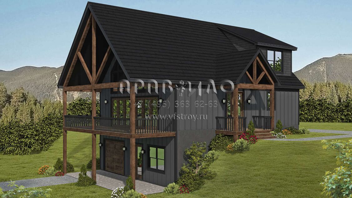 Проект двухэтажного дома с гаражом на одну машину в стиле Шале S5-164 (940-00577)