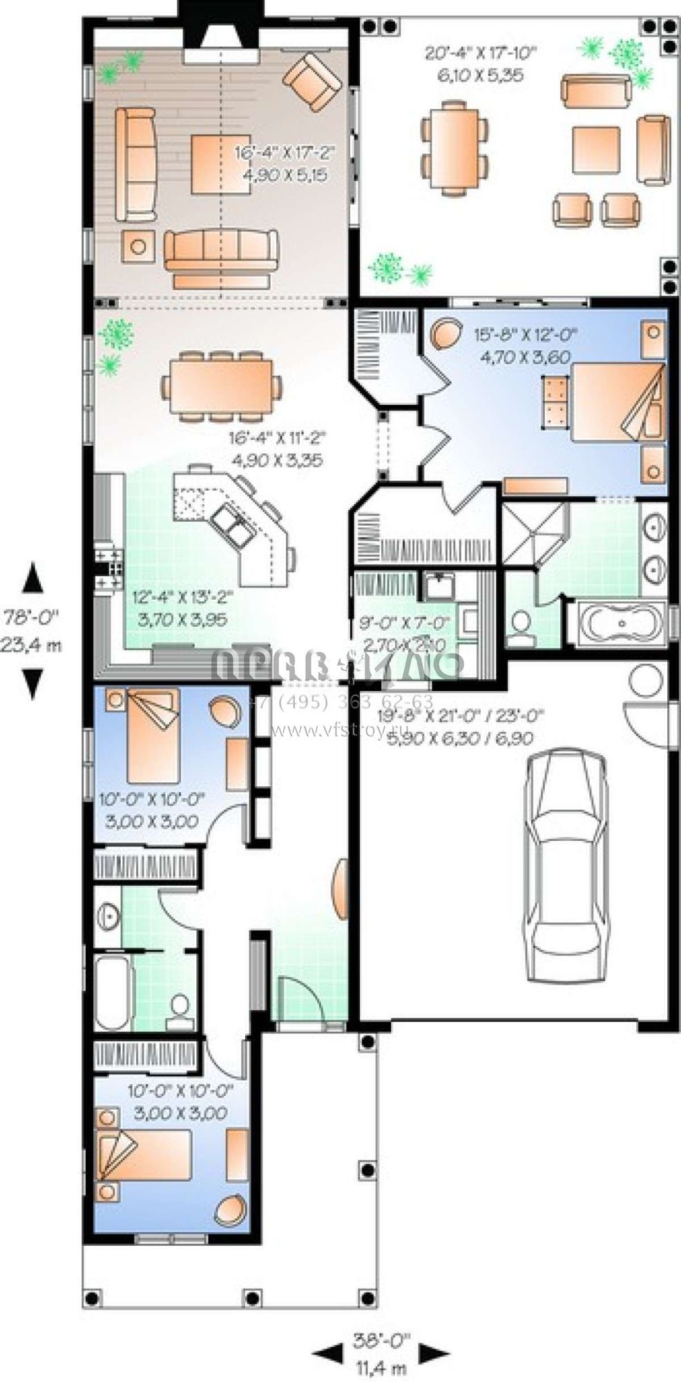 Проект одноэтажного дома с гаражом на две машины в стиле Ранчо S5-165 (034-00670)