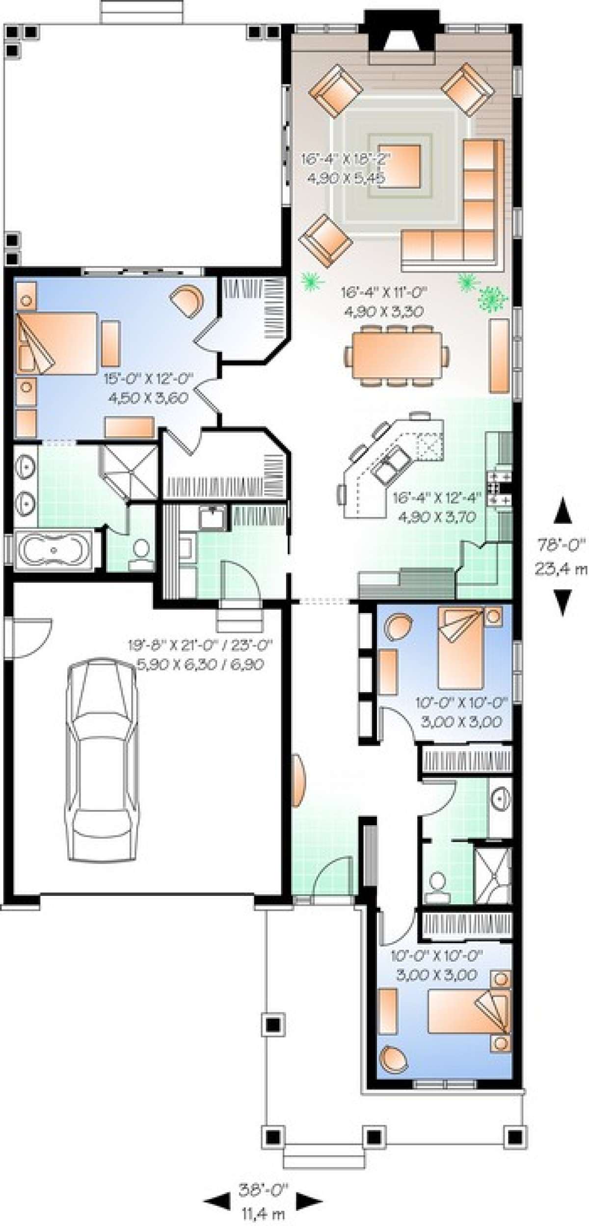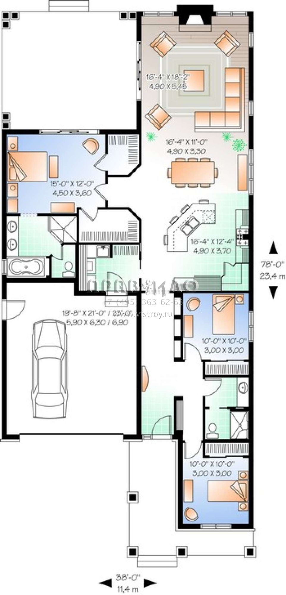 Проект одноэтажного дома с гаражом на две машины в стиле Ранчо S5-165 (034-00975)