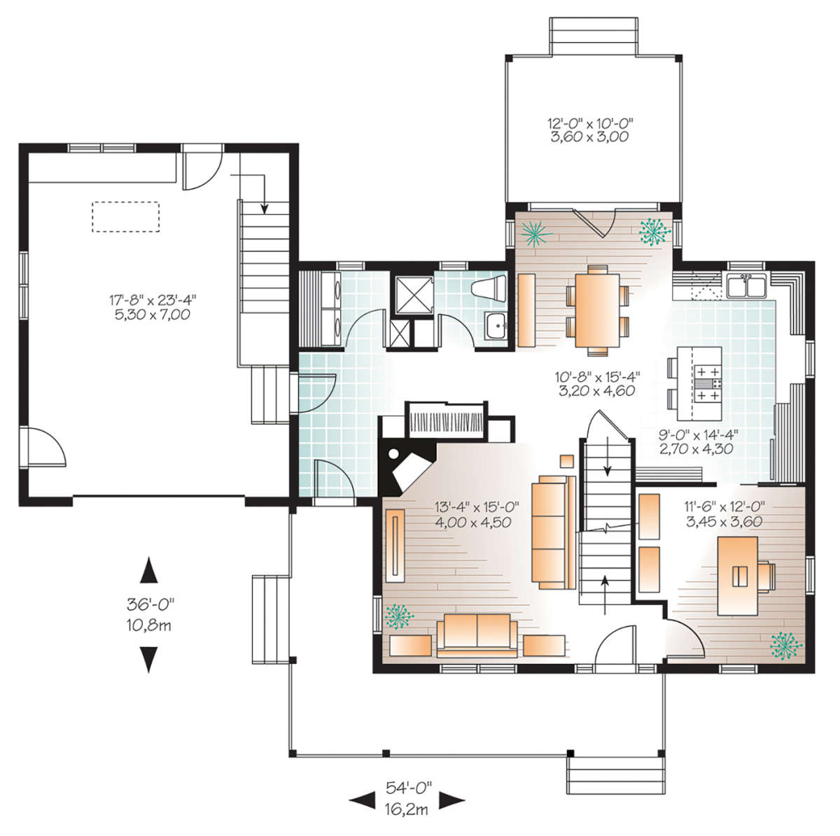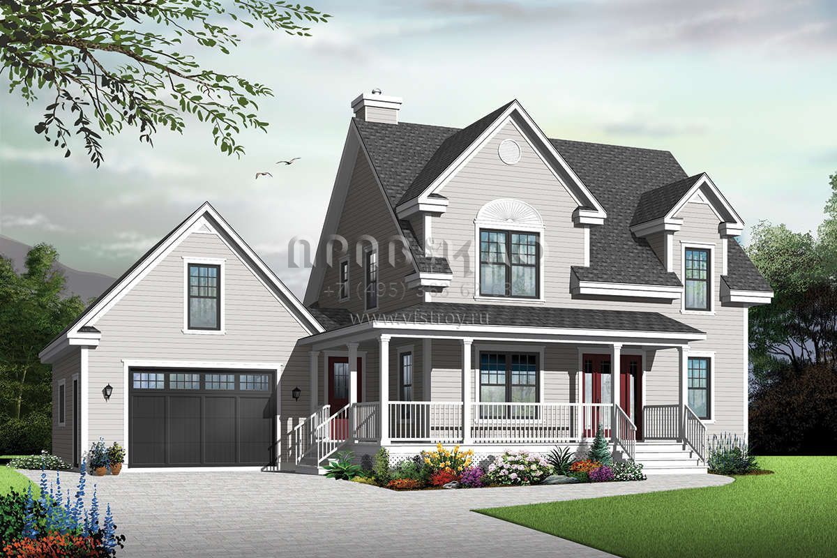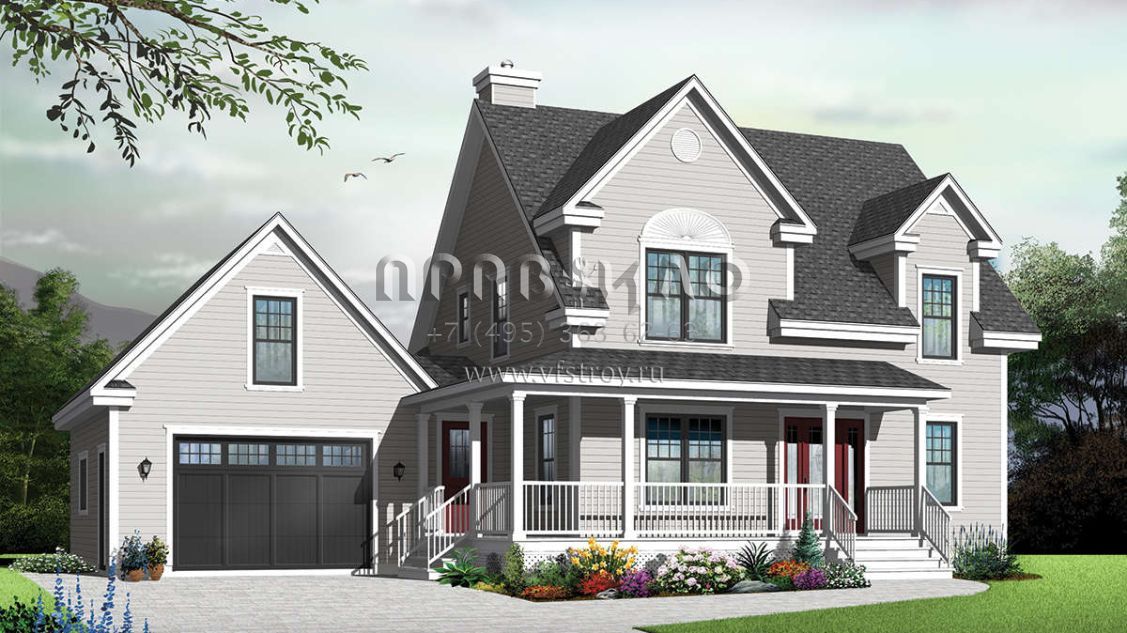 Проект двухэтажного дома с гаражом на одну машину в стиле Ранчо S5-165 (034-01156)