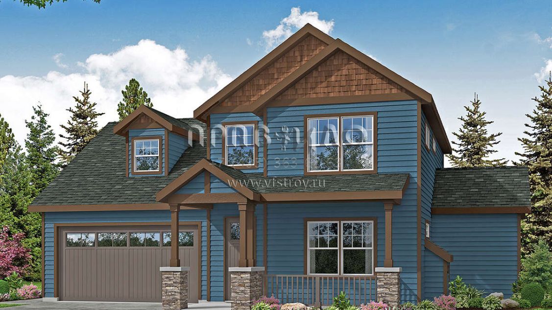 Проект двухэтажного дома с гаражом на две машины в американском стиле S5-165 (035-00901)