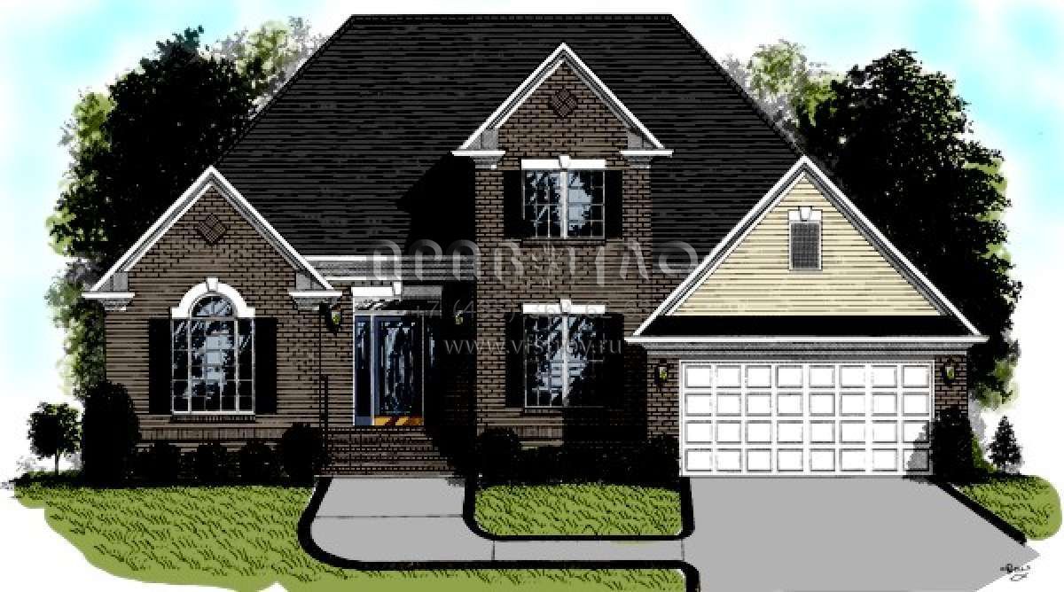 Проект двухэтажного дома с гаражом на две машины в стиле Ранчо S5-165 (036-00045)