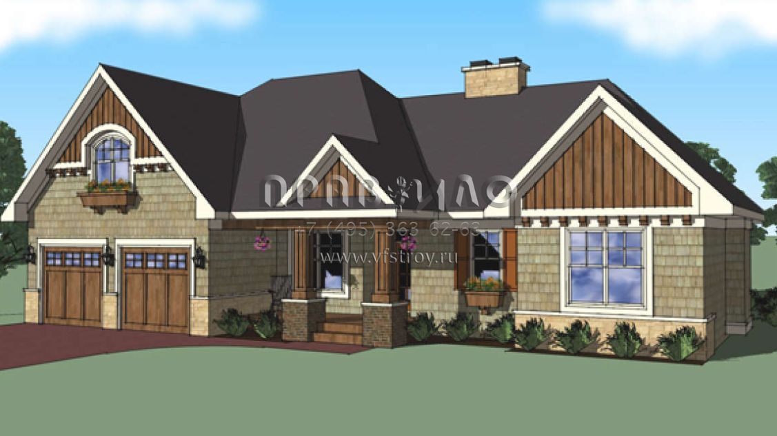 Проект одноэтажного дома с гаражом на две машины в стиле Ранчо S5-165 (098-00262)