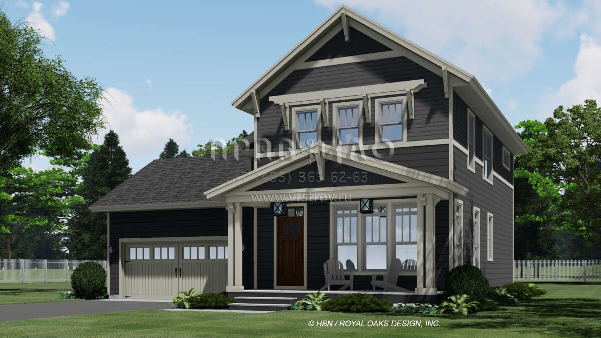 Проект двухэтажного дома с гаражом на две машины в американском стиле S5-165 (098-00353)