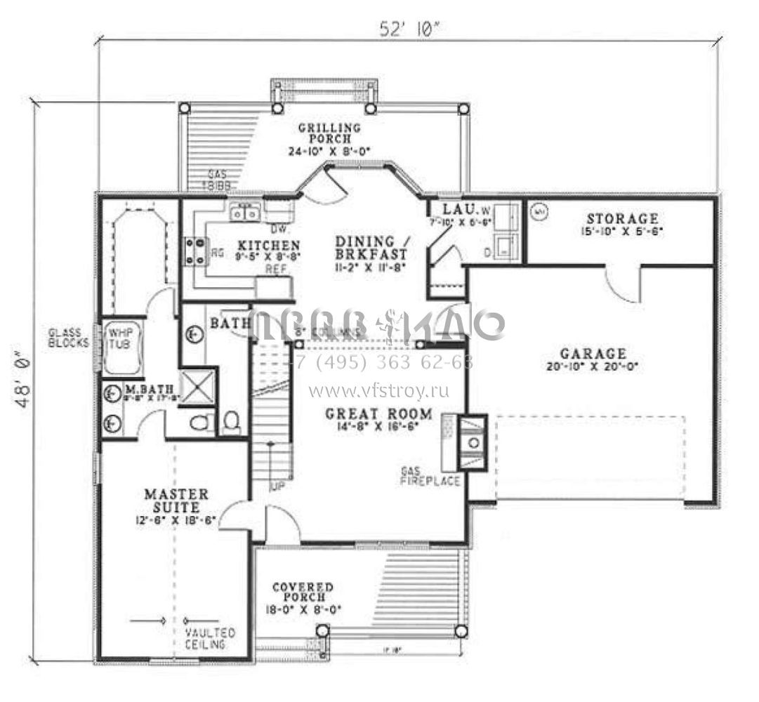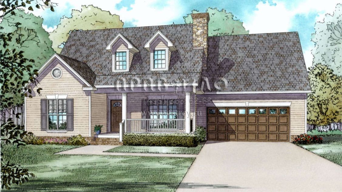 Проект двухэтажного дома с гаражом на две машины в стиле Ранчо S5-165 (110-00290)