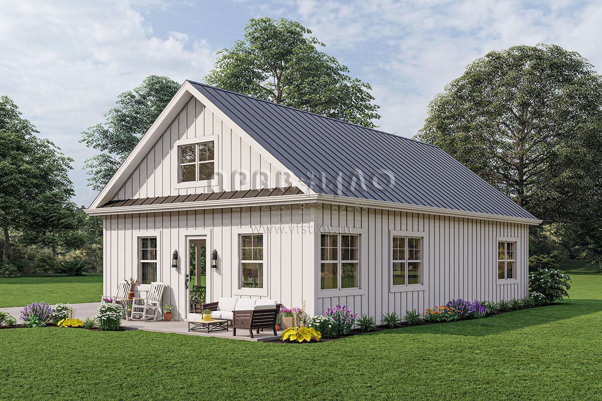 S5-165 (1462-00059) Это иностранный проект, для которого требуется адаптация под нормы, действующие в Российской Федерации. Вы видите проект дома в современном стиле. В этом доме сочетаются черты сельской постройки и аскетичность лофта. Внутри жильцы смогут проводить время с максимальным комфортом. Обратим внимание, что сейчас на планировках все размеры представлены в футах. Для перевода в метры вам необходимо значение в футах умножить на 0,3048.