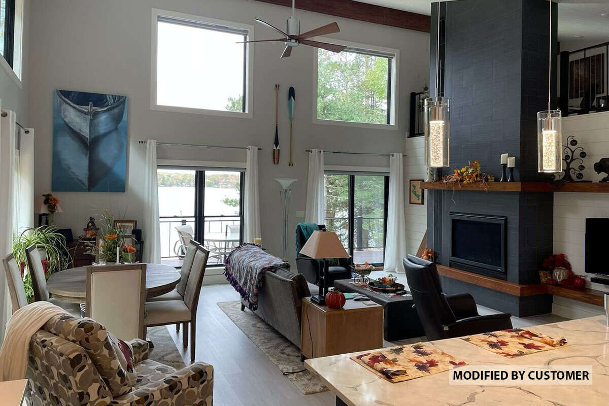 S5-165 (940-00513) Это иностранный проект, для которого требуется адаптация под нормы, действующие в Российской Федерации. Вы видите проект дома в современном стиле. В этом доме сочетаются черты сельской постройки и аскетичность лофта. Внутри жильцы смогут проводить время с максимальным комфортом. Обратим внимание, что сейчас на планировках все размеры представлены в футах. Для перевода в метры вам необходимо значение в футах умножить на 0,3048.