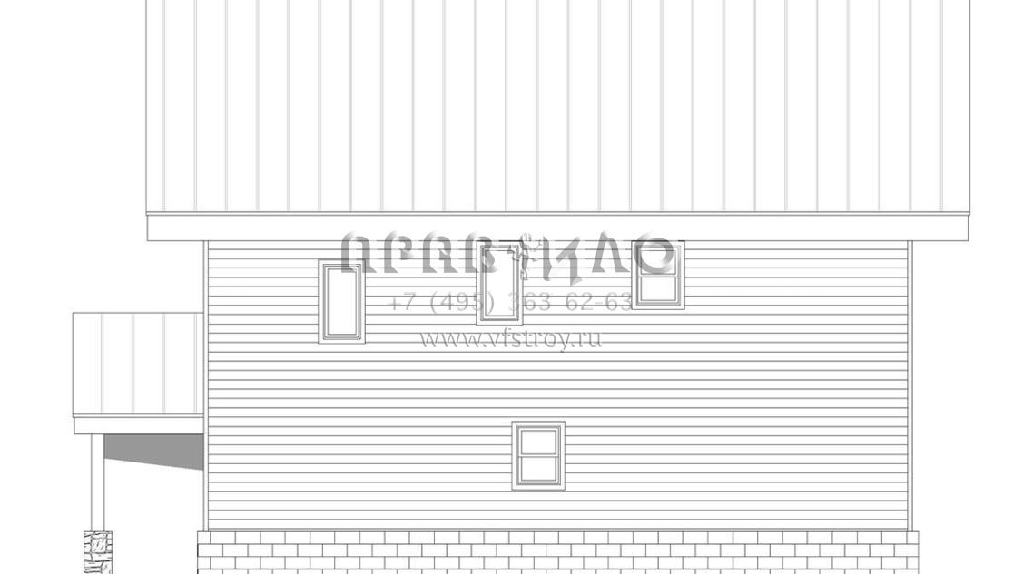 Двухэтажный проект дома позволяет рационально распорядиться площадью участка небольшого размера или узкой формы. На первом этаже находятся общие комнаты (гостиная/столовая, кухня, подсобные и технические помещения), на втором — спальни членов семьи.