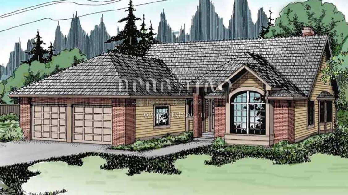 Проект одноэтажного дома с гаражом на две машины в стиле Ранчо S5-166 (035-00646)