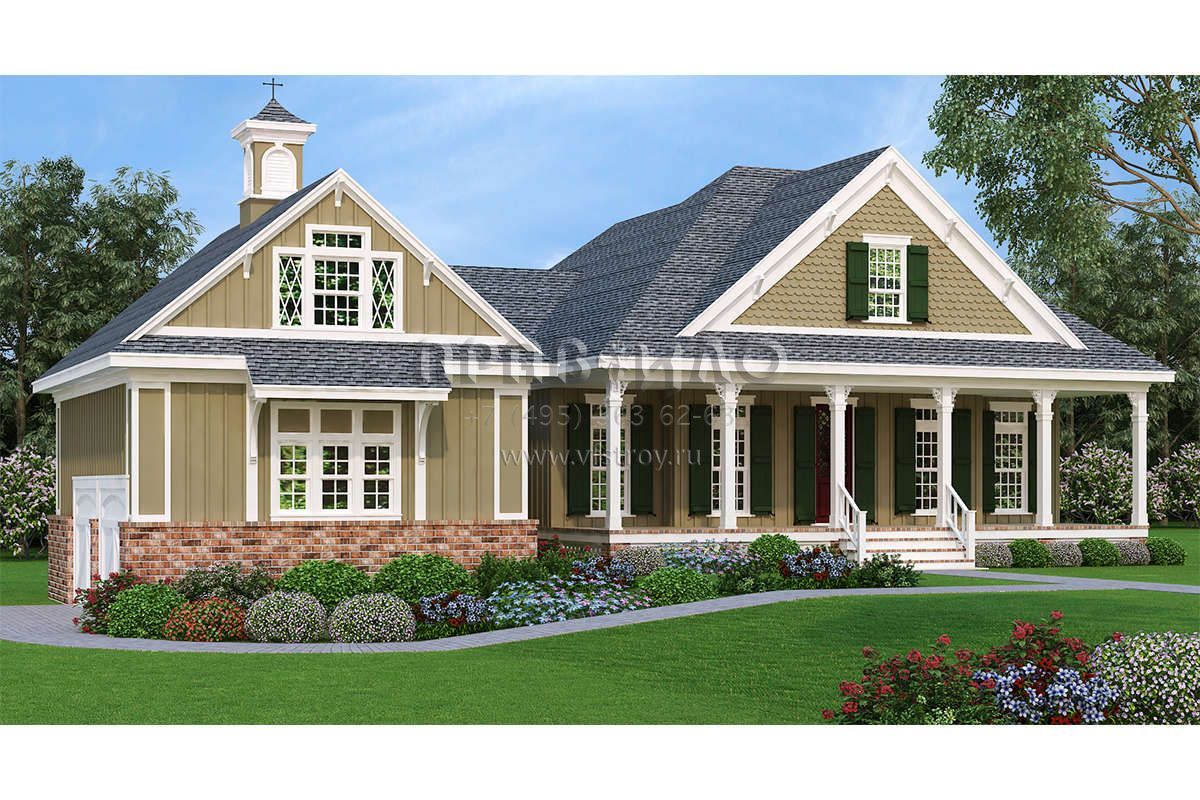 Проект двухэтажного дома с гаражом на две машины в стиле Ранчо S5-166 (048-00259)
