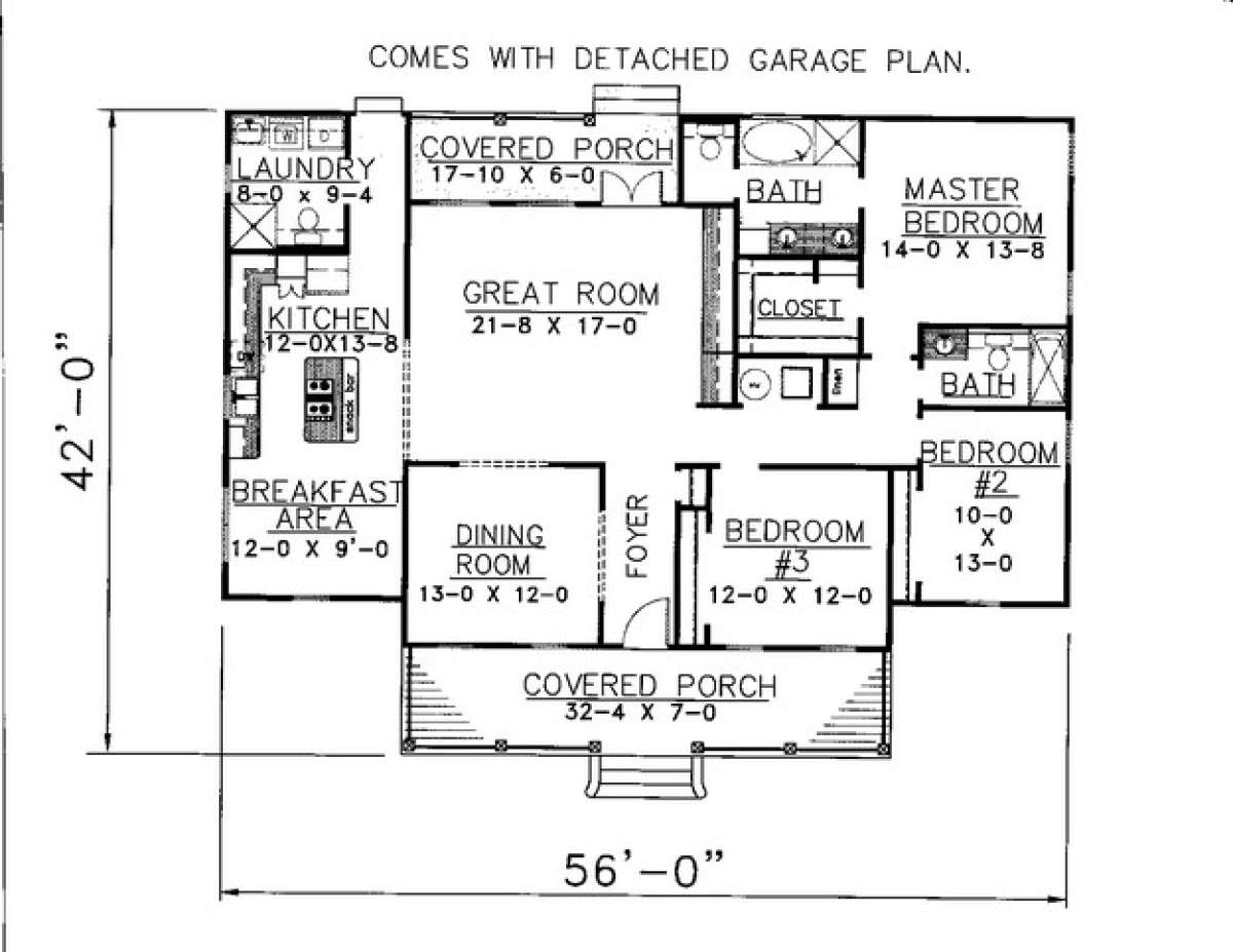 Проект одноэтажного дома с гаражом на две машины в стиле Ранчо S5-166 (1776-00039)
