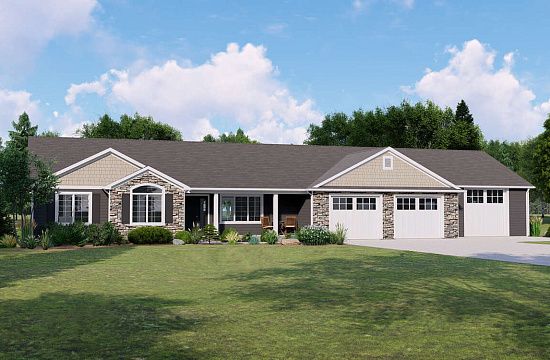 Проект одноэтажного дома с гаражом на две машины в стиле Ранчо S5-166 (2865-00091)