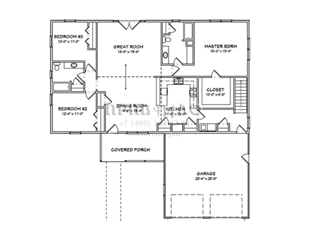 Проект одноэтажного дома с гаражом на две машины в стиле Ранчо S5-166 (849-00049)