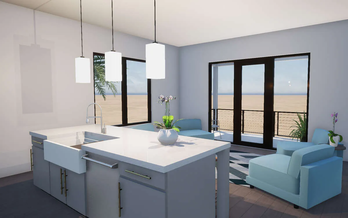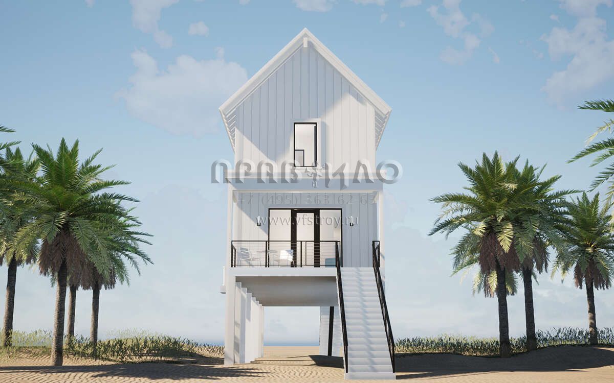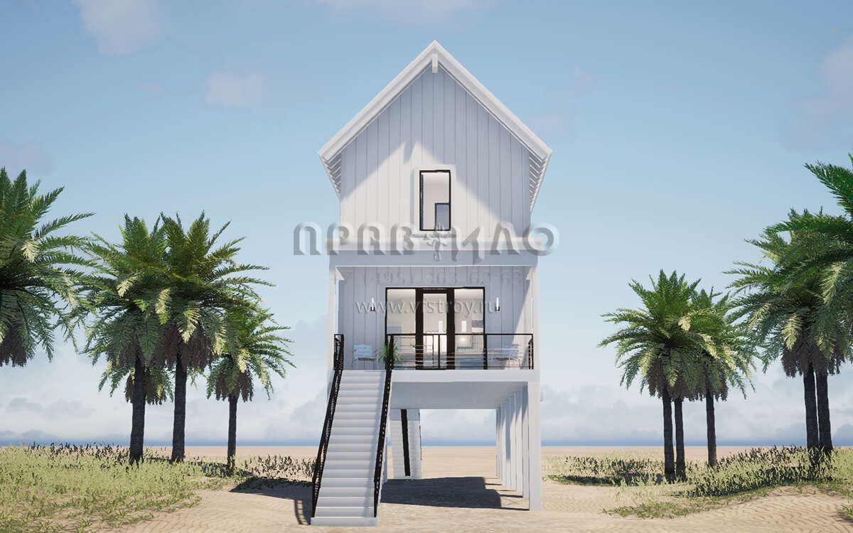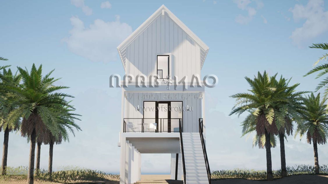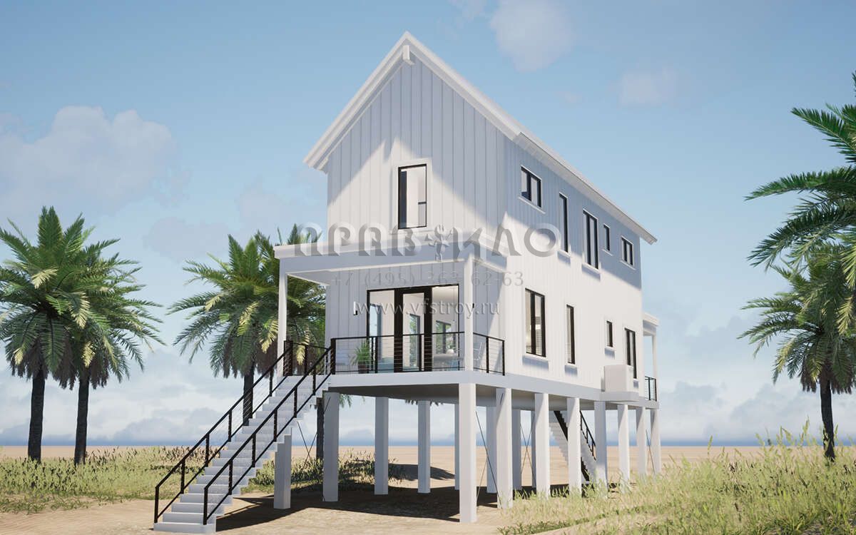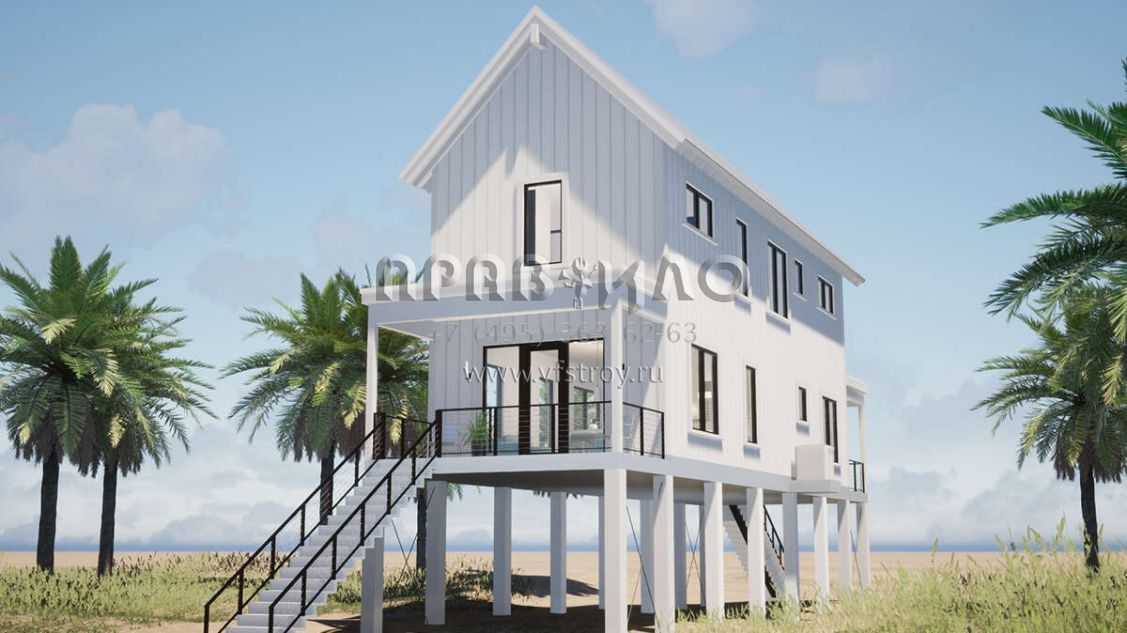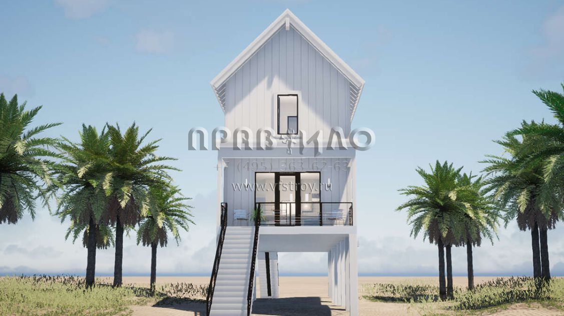 Проект двухэтажного дома с гаражом на одну машину в прибрежном стиле S5-167 (028-00195)