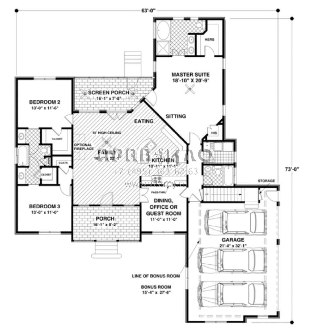 Проект одноэтажного дома с гаражом на три и более машин в стиле Ранчо S5-167 (036-00061)