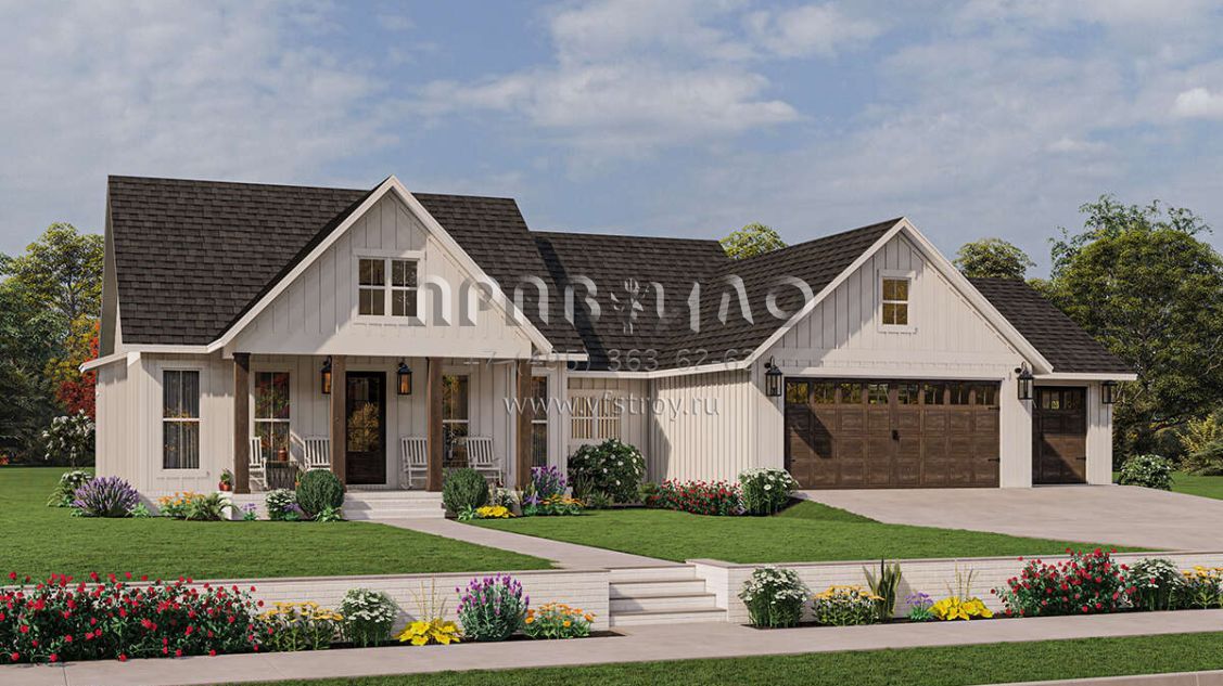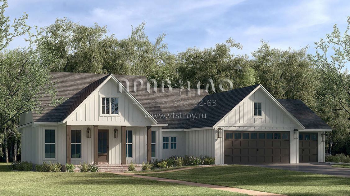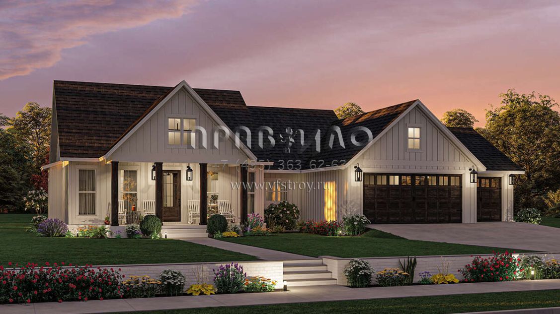 Проект одноэтажного дома с гаражом на три и более машин в современном стиле S5-167 (041-00318)