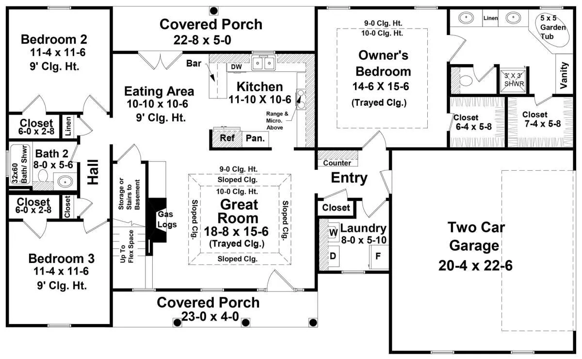 Проект одноэтажного дома с гаражом на две машины в стиле Ранчо S5-167 (348-00056)