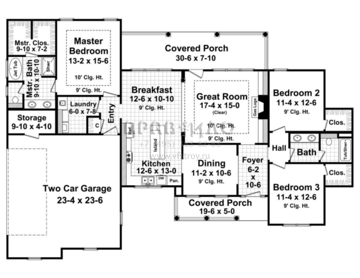 Проект одноэтажного дома с гаражом на две машины в стиле Ранчо S5-167 (348-00065)