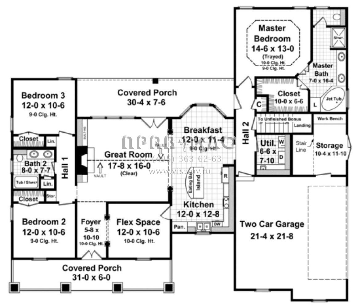 Проект одноэтажного дома с гаражом на две машины в стиле Ранчо S5-167 (348-00175)