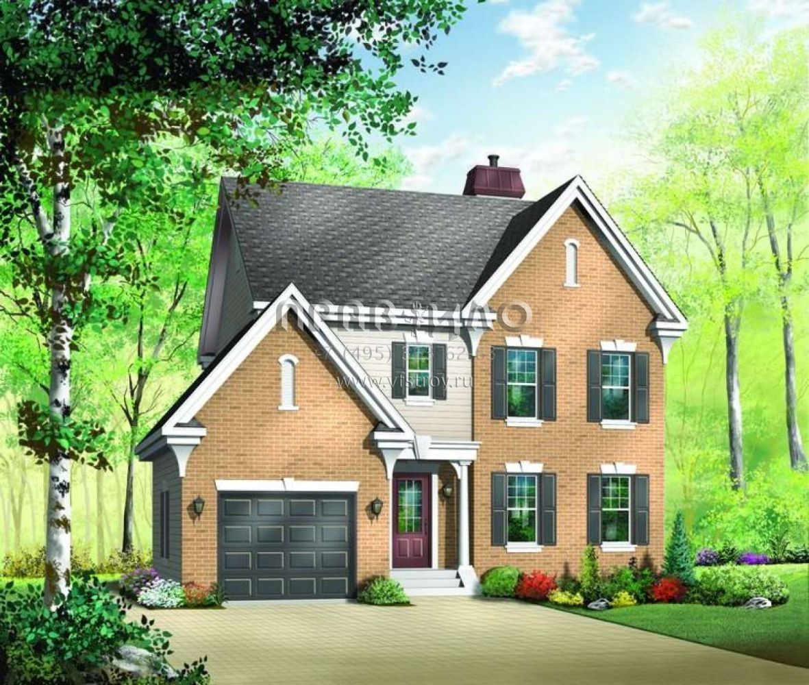 Проект двухэтажного дома с гаражом на одну машину в английском стиле S5-168 (034-00955)