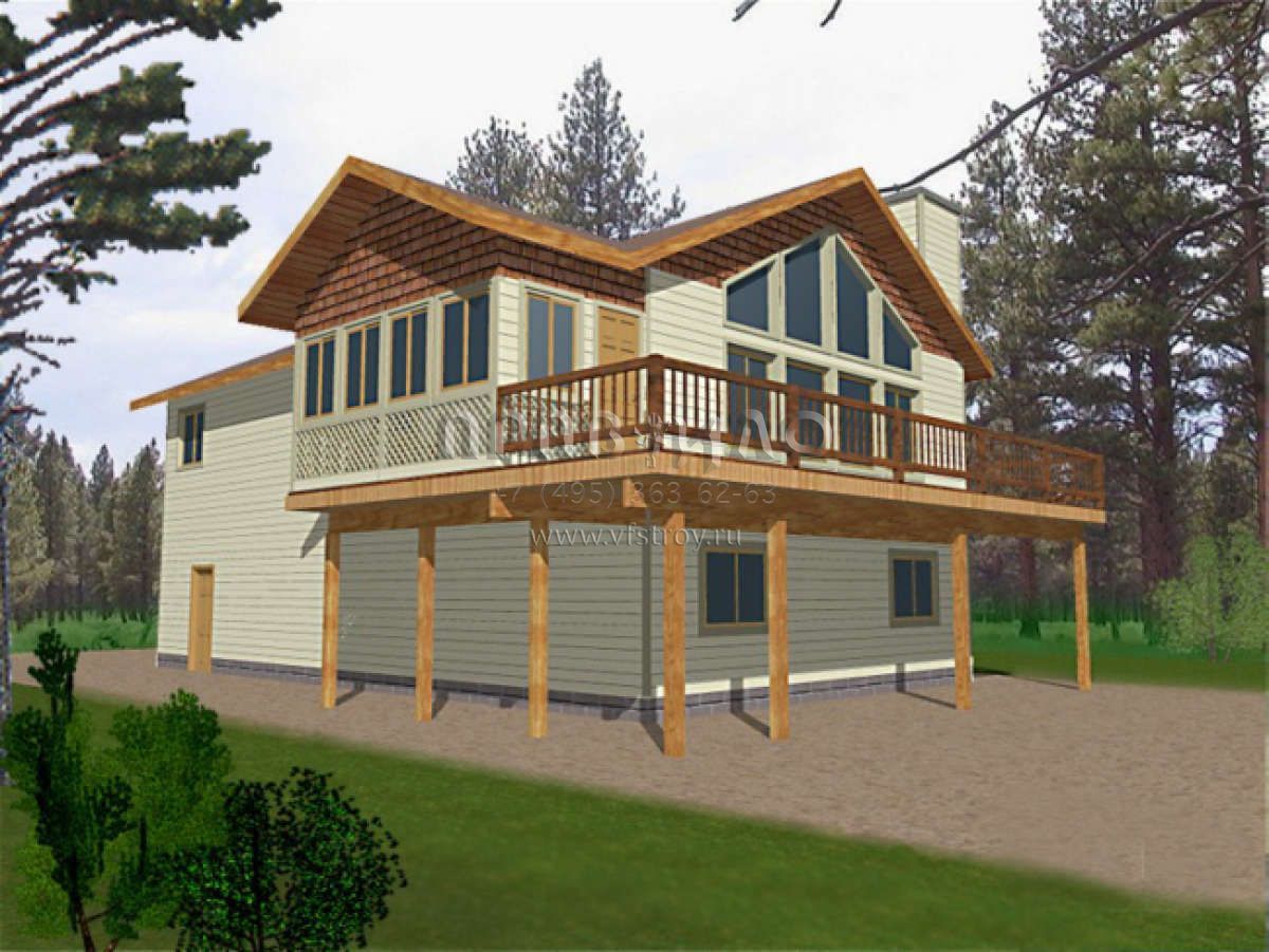 Проект двухэтажного дома с гаражом на две машины в стиле Шале S5-168 (039-00144)