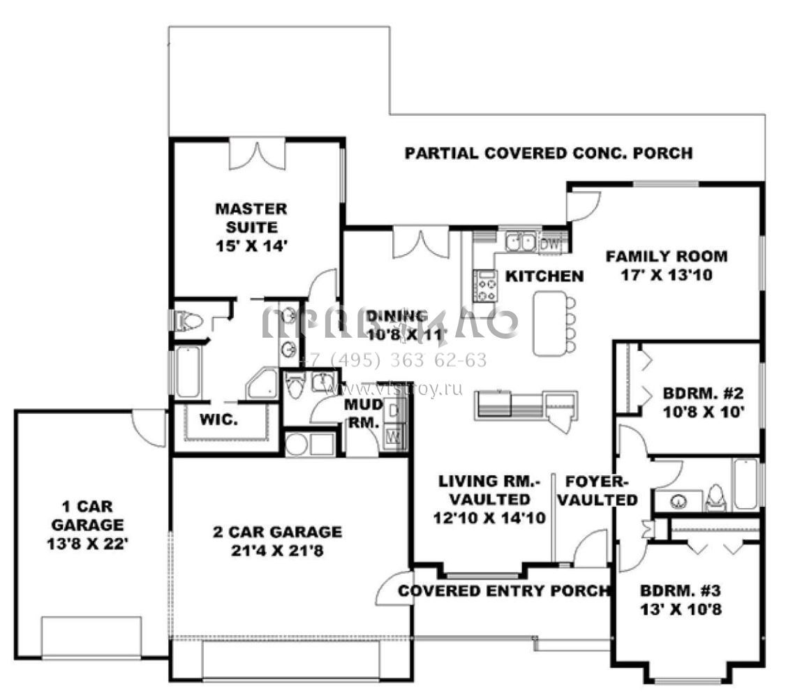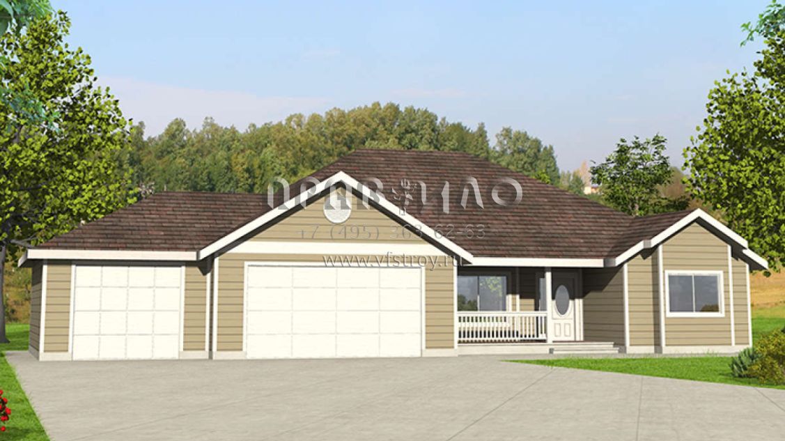 Проект одноэтажного дома с гаражом на три и более машин в стиле Ранчо S5-168 (039-00681)
