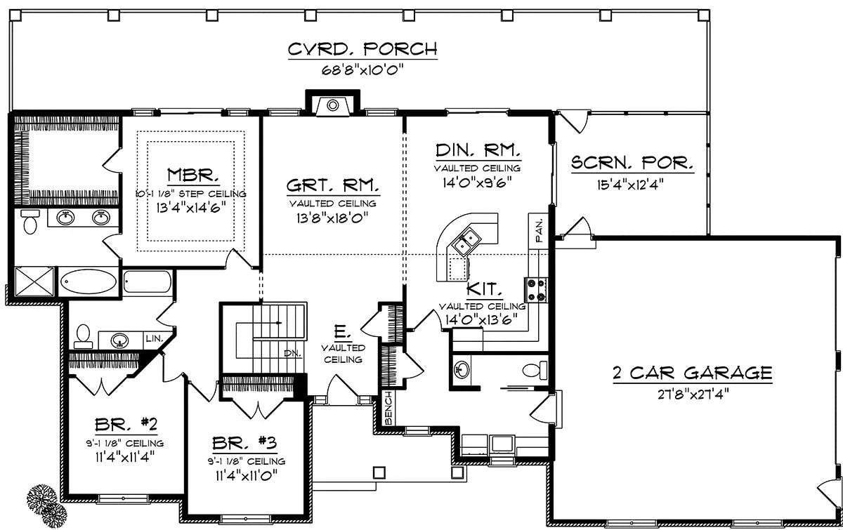 Проект одноэтажного дома с гаражом на две машины в стиле Ранчо S5-168 (1020-00167)