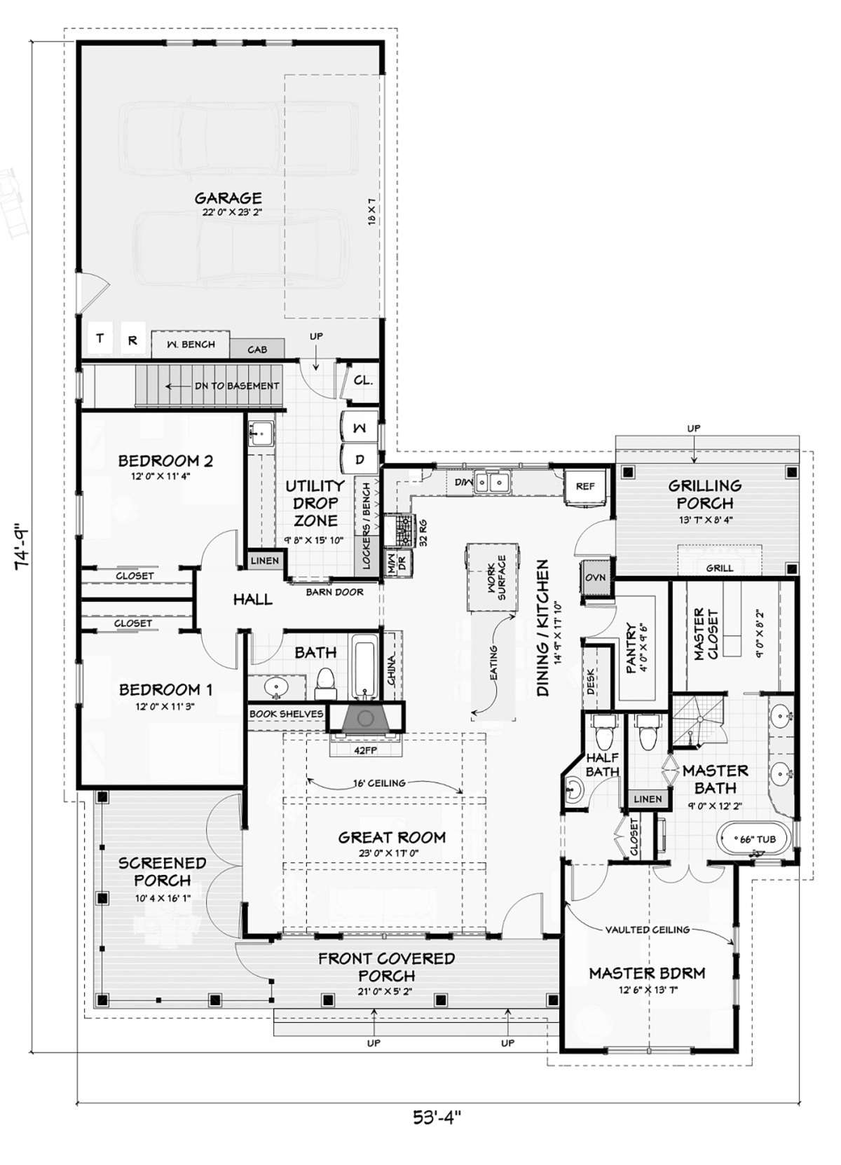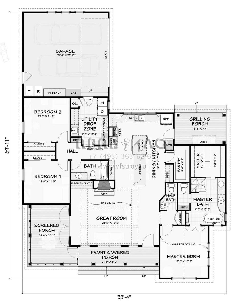 Проект одноэтажного дома с гаражом на две машины в стиле Ранчо S5-168 (3125-00026)