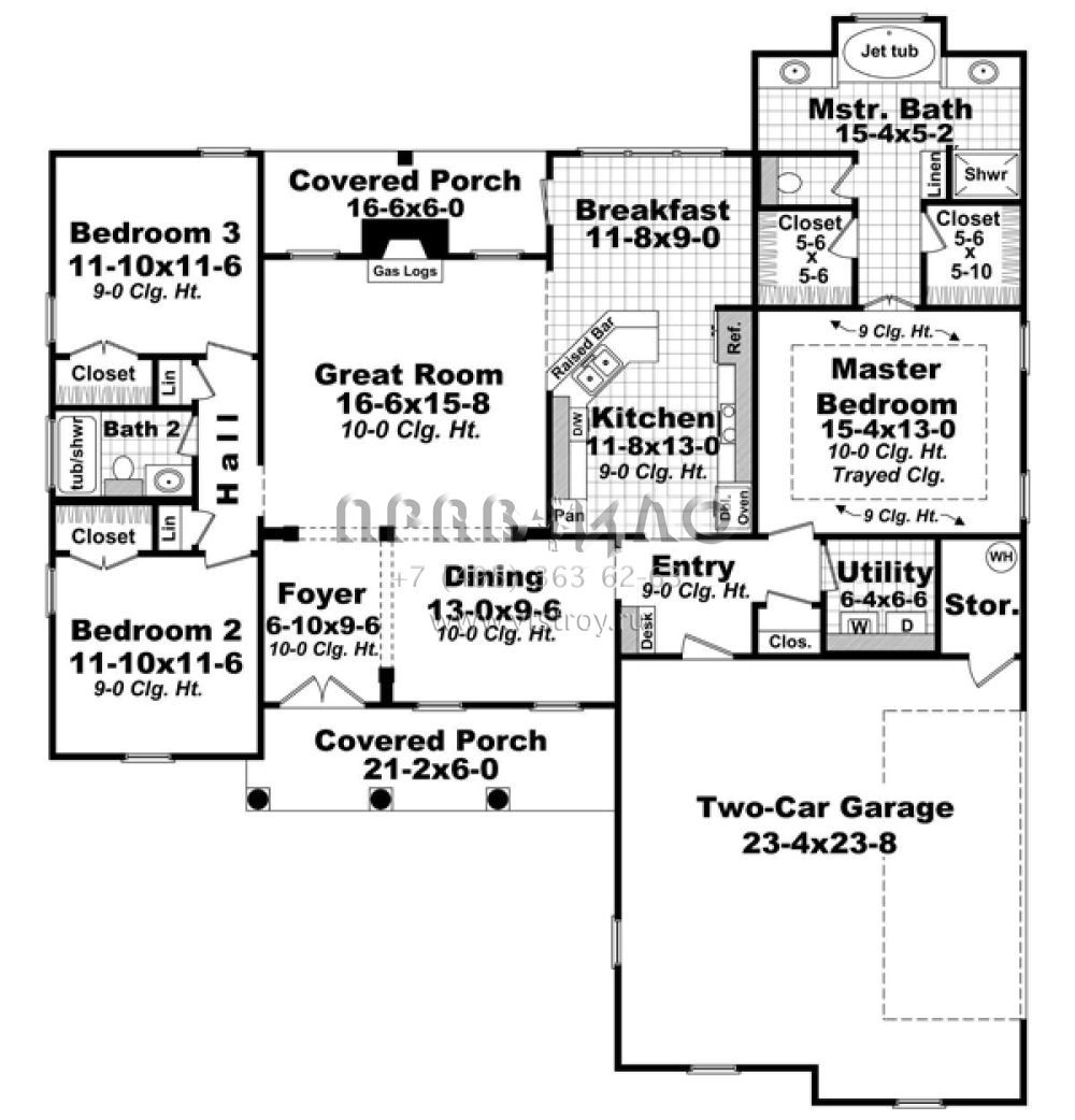 Проект одноэтажного дома с гаражом на две машины в стиле Ранчо S5-168 (348-00266)