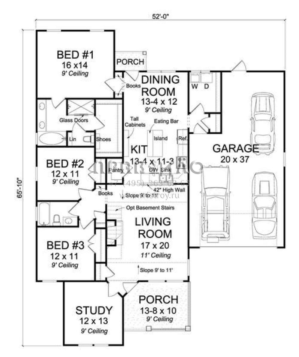 Проект одноэтажного дома с гаражом на две машины в стиле Ранчо S5-168 (4848-00326)