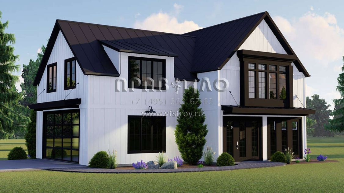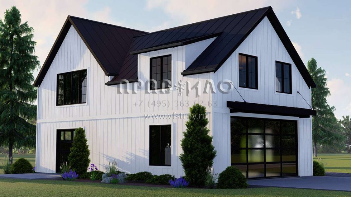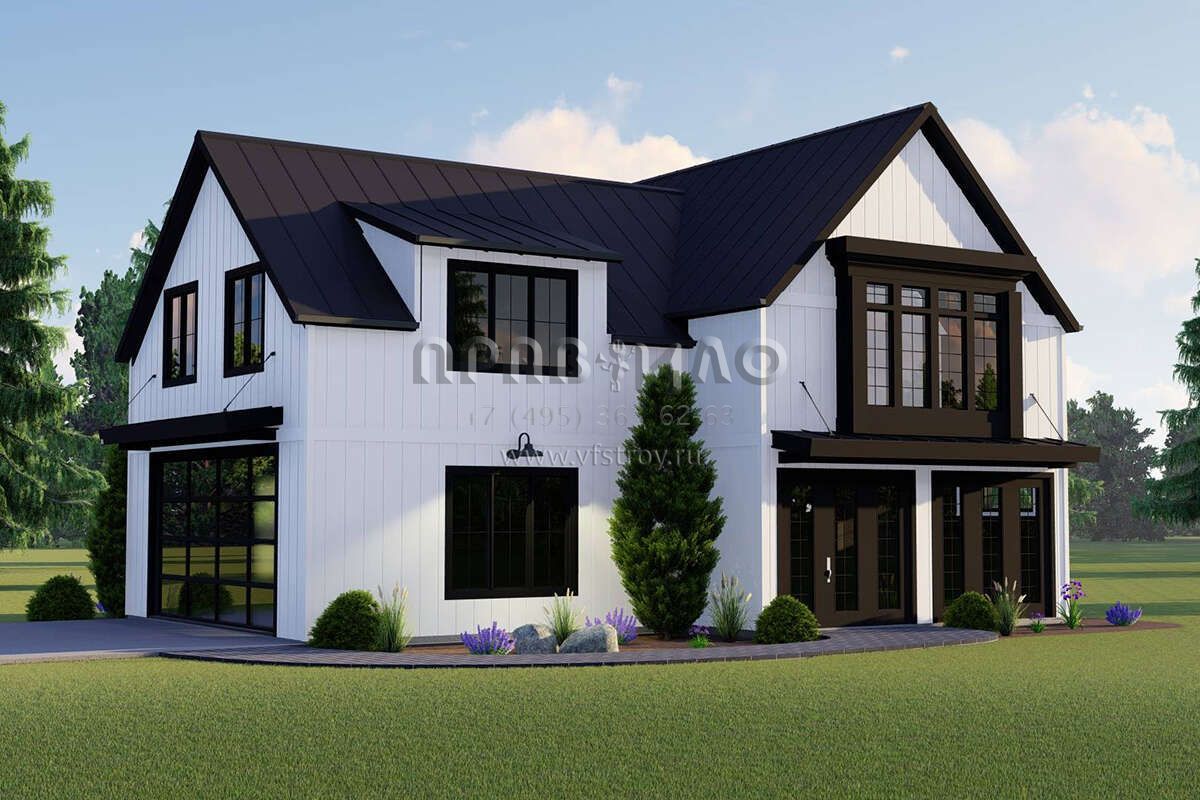 Проект двухэтажного дома с гаражом на две машины в современном стиле S5-168 (5032-00164)