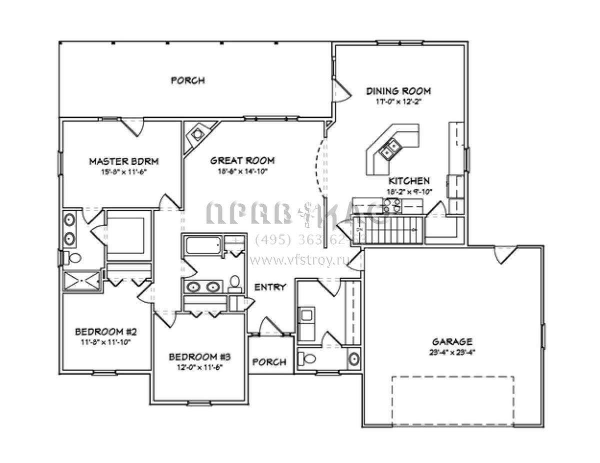 Проект одноэтажного дома с гаражом на две машины в стиле Ранчо S5-168 (849-00055)