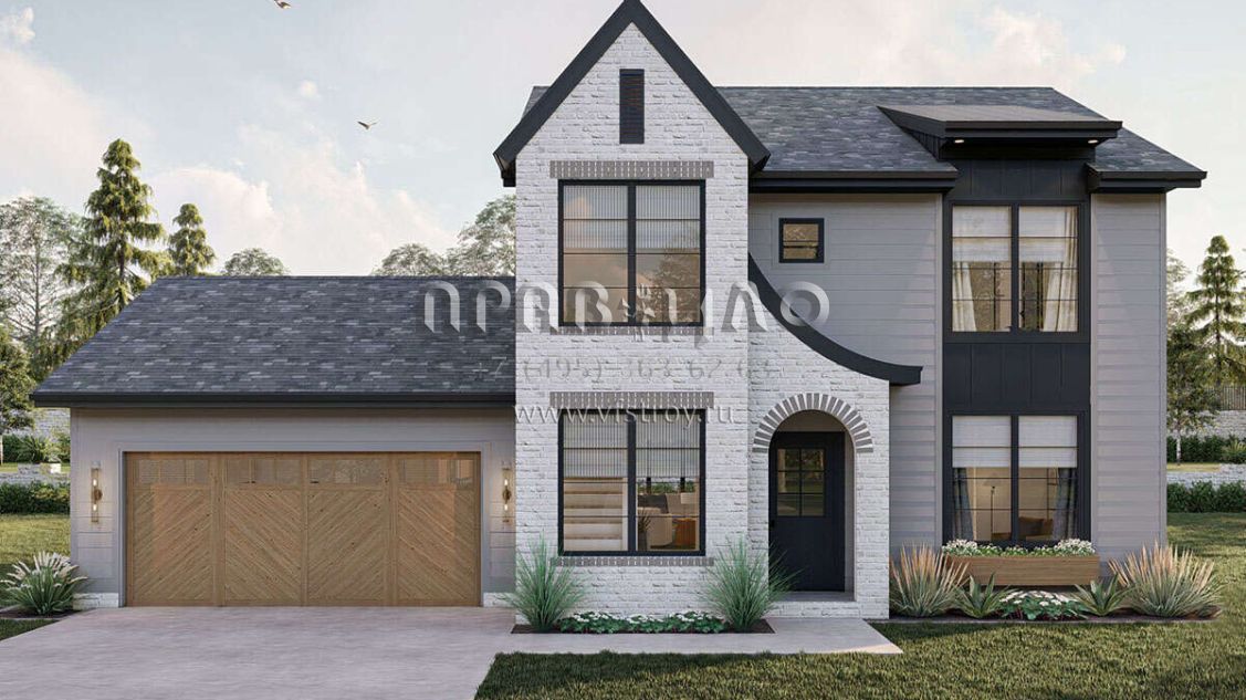 Проект двухэтажного дома с гаражом на две машины в современном стиле S5-168 (963-00772)